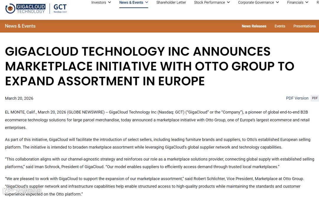 据悉,德国OTTO已与B2B服务商GigaCloud达成合作,将通过GigaCloud引入更多家具品牌和亚洲供应商,丰富平台的商品种类。根据合作信息,双方合作目标明确:扩展品类,显著增加平台SKU,特别是聚焦于家具等垂直类目;引入资源,GigaCloud利用其全球网络,直接对接亚洲供应链,输送合规、有竞争力的卖家;提升竞争力,最终目的是丰富OTTO的商品库,以更全的品类和更优的性价比,巩固其在欧洲乃至全球市场的地位。