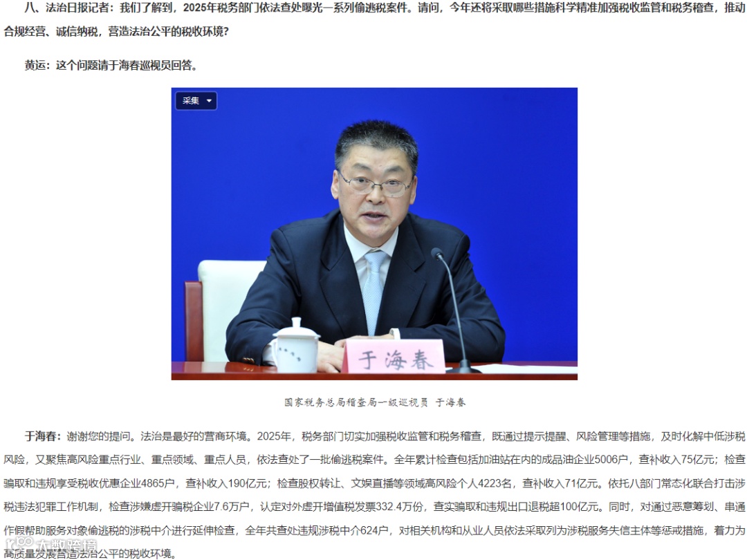 ■ 国家税务总局:2025年,税务部门切实加强税收监管和税务稽查