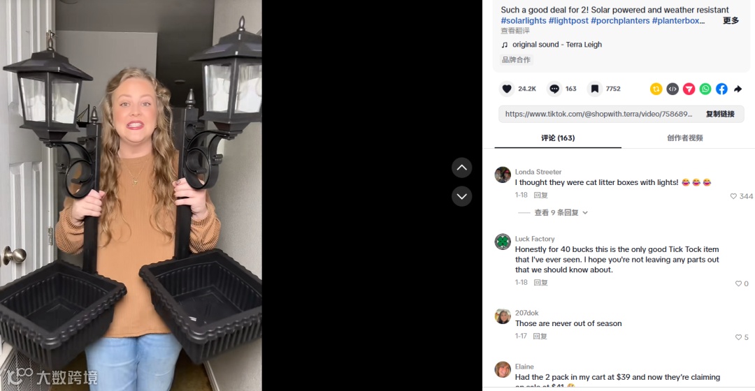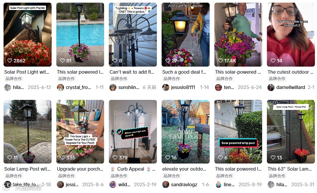 随着天气转暖,海外园艺热潮兴起,盆栽种植与花园装饰品需求激增。近期,一款集路灯与花盆功能于一体的户外太阳能灯具在TikTok引发热议。