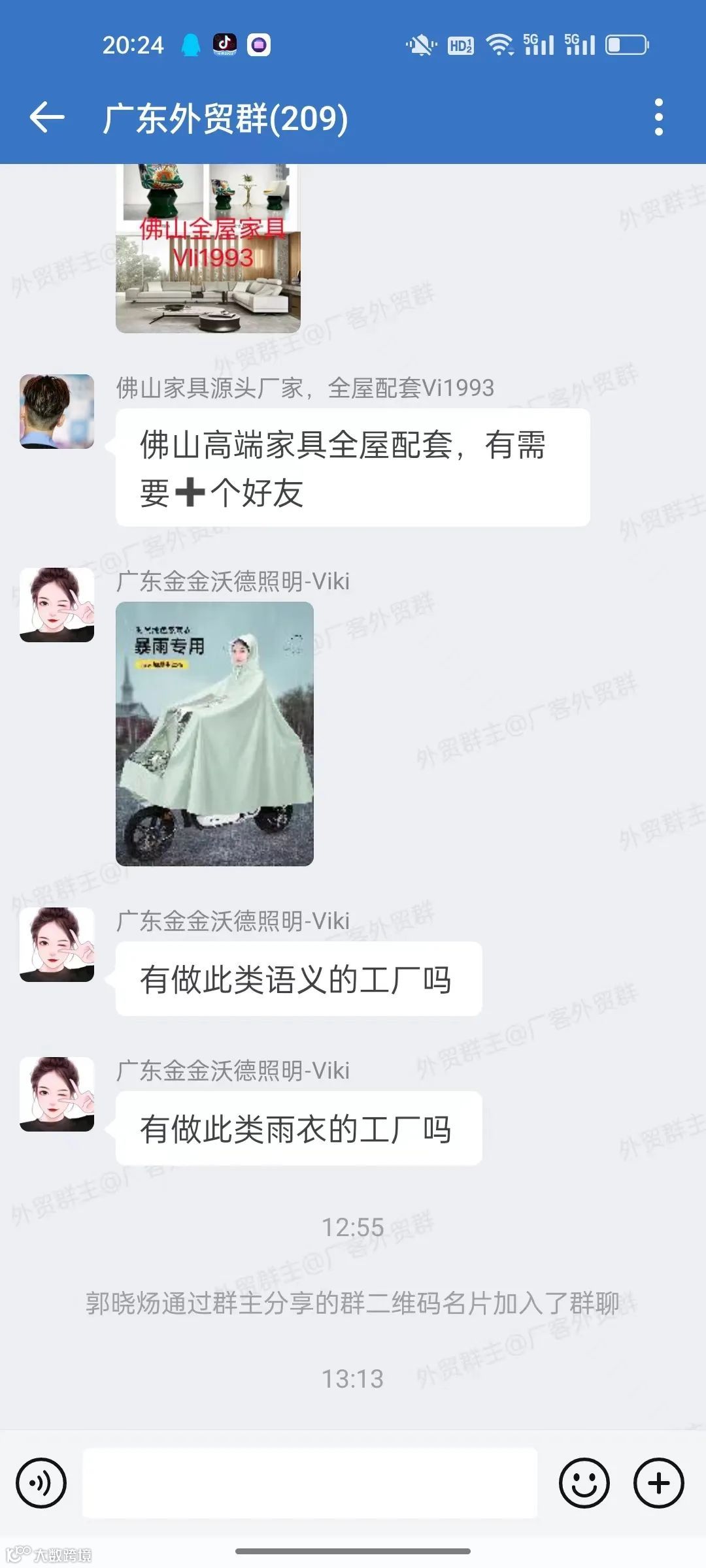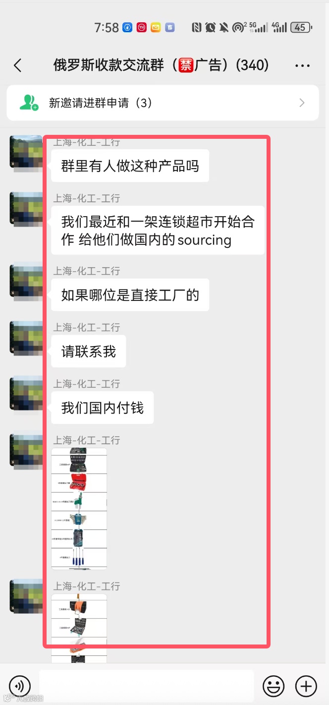 罗伯斯收款交流群现有成员330余人,面向有采购与销售需求的外贸从业者开放。群内可发布外贸采购信息、产品销售信息,支持文字、图片、视频等多种形式,要求信息真实有效,禁止高频刷屏广告。