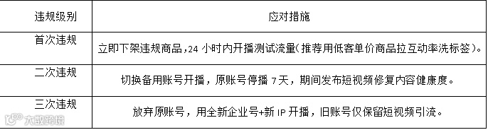 首次违规降权50%,二次违规禁止直播7天,三次违规封店。