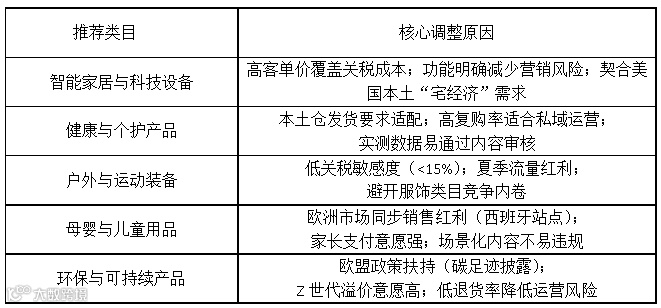 避开高关税敏感品类,转向高溢价商品,以下表格是一些推荐选择的品类:
