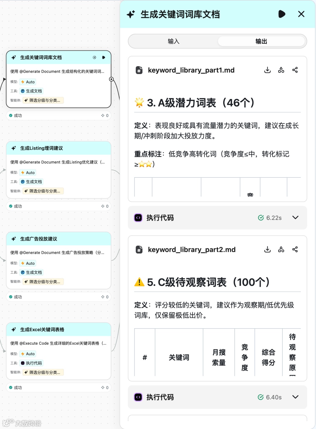 输出结构化词库 + Listing埋词建议 + 广告投放词表,拿到就能用。